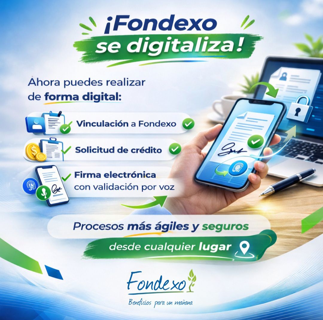 En Fondexo seguimos innovando para brindarte procesos más ágiles y eficientes. Ahora vincularte a Fondexo es más fácil y puedes hacerlo rápido y desde cualquier lugar. Vincúlate y aprovecha los beneficios registrándote aquí ⬇️:https://vozdata.com.co/Fondexo/FormularioAvanzadoPublicoDatos/359bcf31-b7b7-45eb-908c-c8c79ebfd5c4