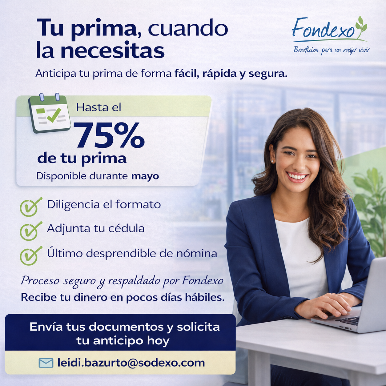 En Fondexo ya se encuentra activa la línea de Anticipo de Prima, para que cuentes con tu dinero cuando más lo necesites.