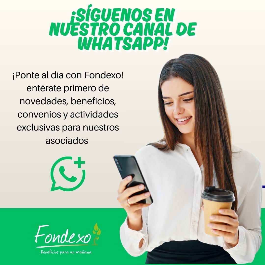 ¡Conéctate con nosotros! En Fondexo queremos estar siempre conectados contigo. Únete a nuestro canal oficial de WhatsApp y recibe información actualizada. Una forma fácil y directa de mantenerte cerca de Fondexo, estés donde estés.