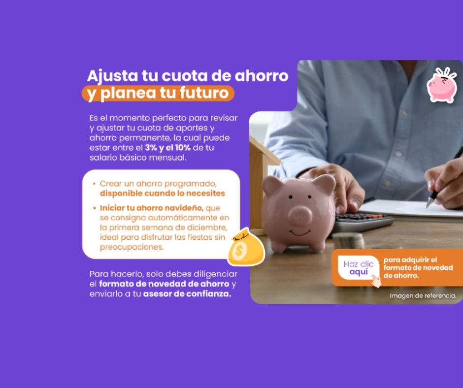 ¡Haz que tu ahorro crezca contigo! En Fondexo te invitamos a ajustar tu cuota de ahorro y alcanzar más rápido tus metas.