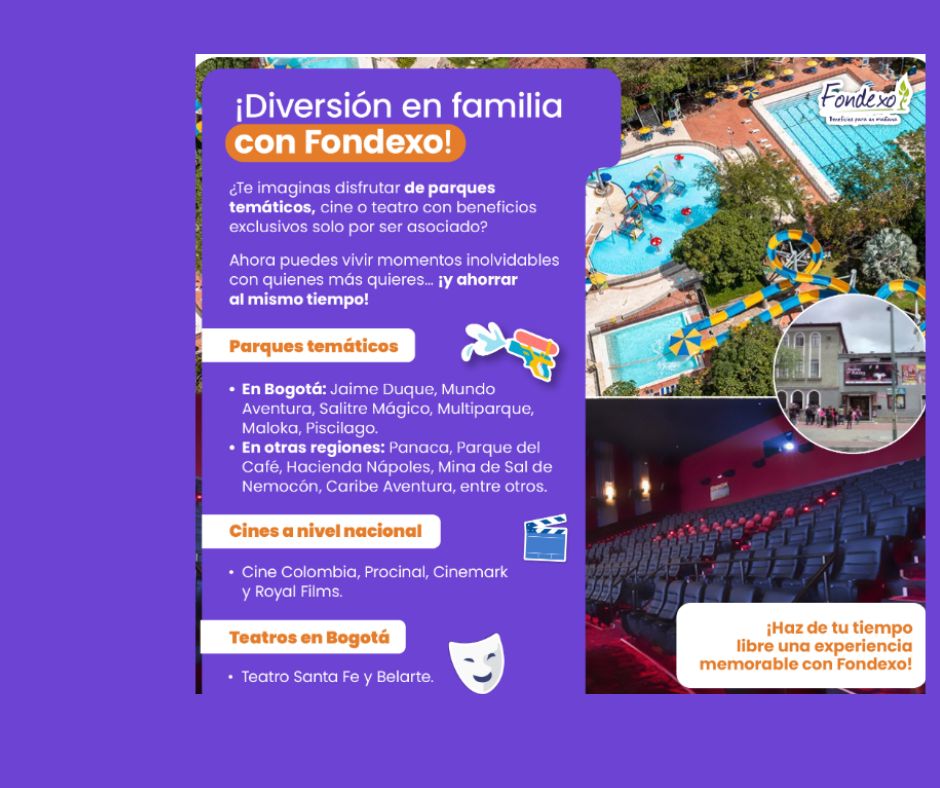 Disfruta momentos inolvidables junto a tu familia y amigos. Accede a descuentos especiales y beneficios exclusivos , y vive experiencias llenas de diversión, aventura y entretenimiento. ¡Con Fondexo, cada plan se vive al máximo!